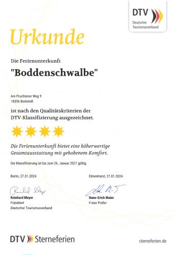Mit 4 Sternen vom Deutschen Tourismusverband e.V. klassifiziert.